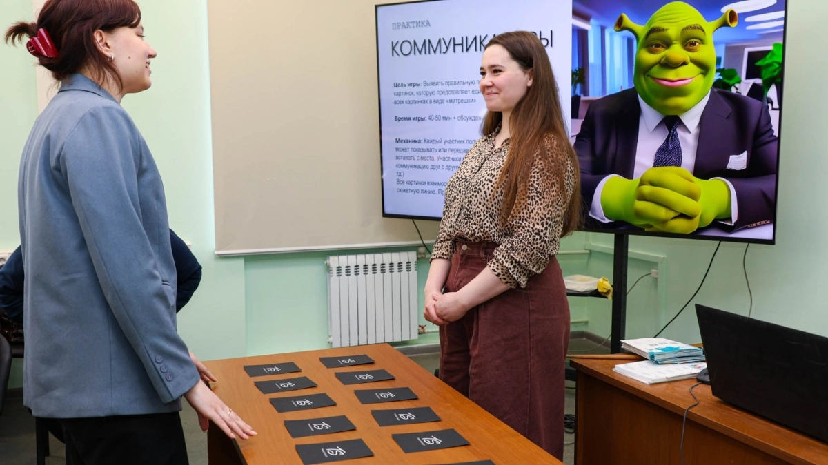 Кульминацией тренинга стала практическая игра «Коммуникаторы». Студенты были разделены на пары, каждая из которых получила карточку с изображением. Задача заключалась в том, чтобы, общаясь вербально и не показывая картинки друг другу, выстроить верную последовательность этих изображений, составляющих единый, взаимосвязанный сюжет. Ребята отлично справились с заданием! Эта игра наглядно продемонстрировала, насколько важны точность формулировок, умение слушать и понимать друг друга, а также находить общий язык для достижения общей цели.