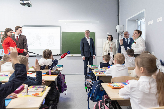 Перед началом мероприятия Дмитрий Миляев осмотрел Центр образования №1 Ясногорска, в котором прошло заседание МВК. Здание школы было капитально отремонтировано в прошлом году в рамках нацпроекта «Молодежь и дети». Были отремонтированы кровля, фасад, лестницы, внутренние помещения, заменены оконные блоки и инженерные сети. Дмитрий Миляев осмотрел обновленные помещения: столовую, центр детских инициатив, класс начальной школы, библиотеку, кабинеты информатики и ОБЗР, спортивный зал. Также глава региона посетил обустроенный в школе «Уголок героя».