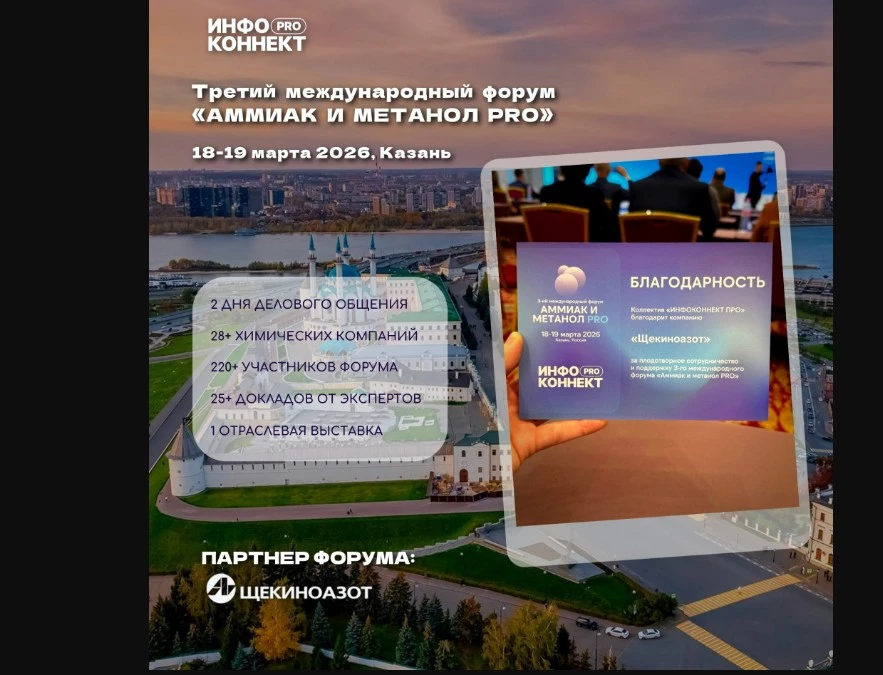 От компании в Казани находятся Дмитрий Гринцевич, начальник ПТО, Эдуард Огинский, начальник производства аммиака и карбамида, Иван Бутырский, главный технолог ПТО по производству АиК, Андрей Коновалов, главный технолог ПТО по производству неорганических веществ. Организатором форума выступило ООО «Инфоконнект ПРО», в числе партнеров, помимо «Щекиноазота», ряд ведущих предприятий нашей страны.