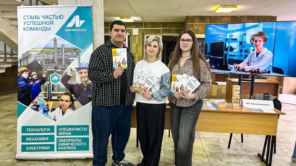 От «Щекиноазота» на Дне открытых дверей работали руководитель направления по развитию молодежной политики Елизавета Заломова и специалисты отдела профессиональной ориентации и молодежной политики Елена Махова и Арсен Саакян.