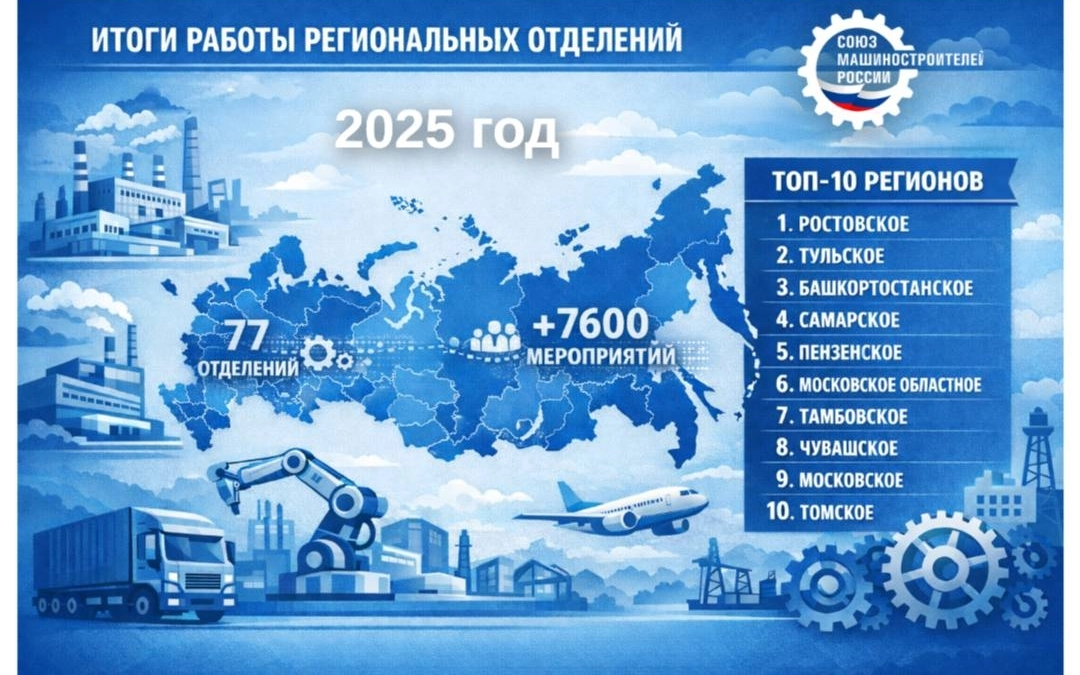 За истекший год семьдесят семь реготделений Союза машиностроителей России провели более семи тысяч шестисот мероприятий, охватывающих широкий круг задач. Они затронули и участие в формировании мер поддержки промпредприятий, и воплощение социальных и гуманитарных инициатив на местах.